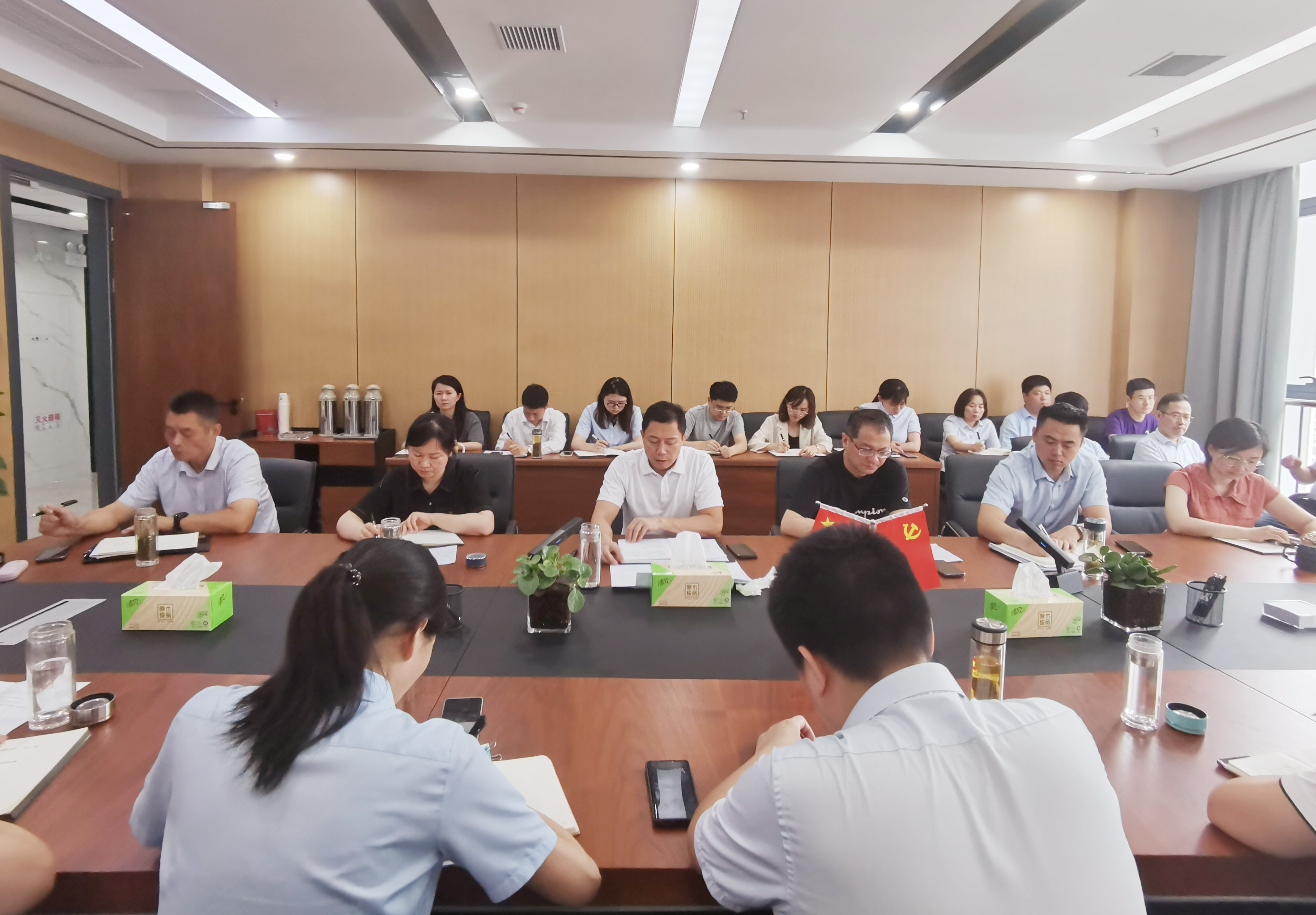 7月22日,市擔(dān)保集團(tuán)召開全體員工會(huì)議,傳達(dá)學(xué)習(xí)省轄市市委書記、市長二季度工作會(huì)議精神,黨委書記、董事長、總經(jīng)理高文進(jìn)主持會(huì)議。