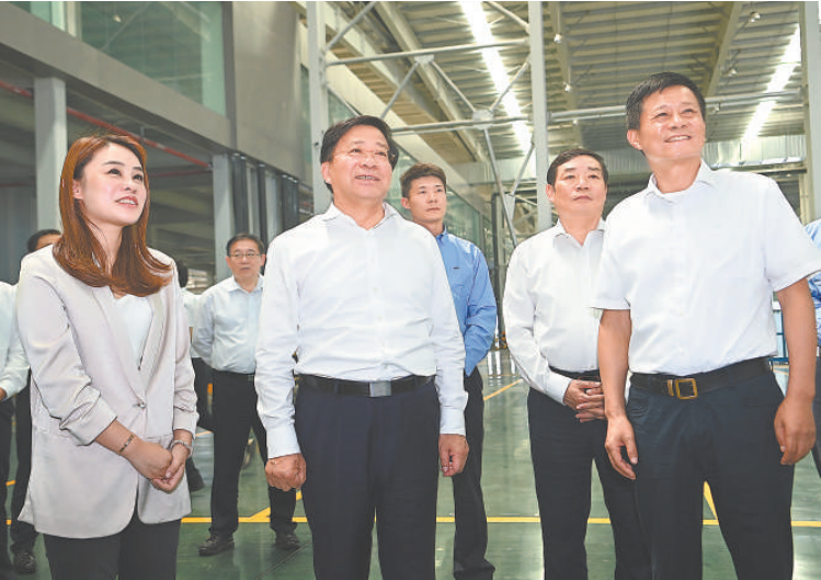 8月31日,省委書記韓俊在滁州市鳳陽縣安徽福萊特光伏玻璃有限公司聽取企業(yè)生產(chǎn)經(jīng)營(yíng)狀況介紹。本報(bào)記者 楊 竹 攝