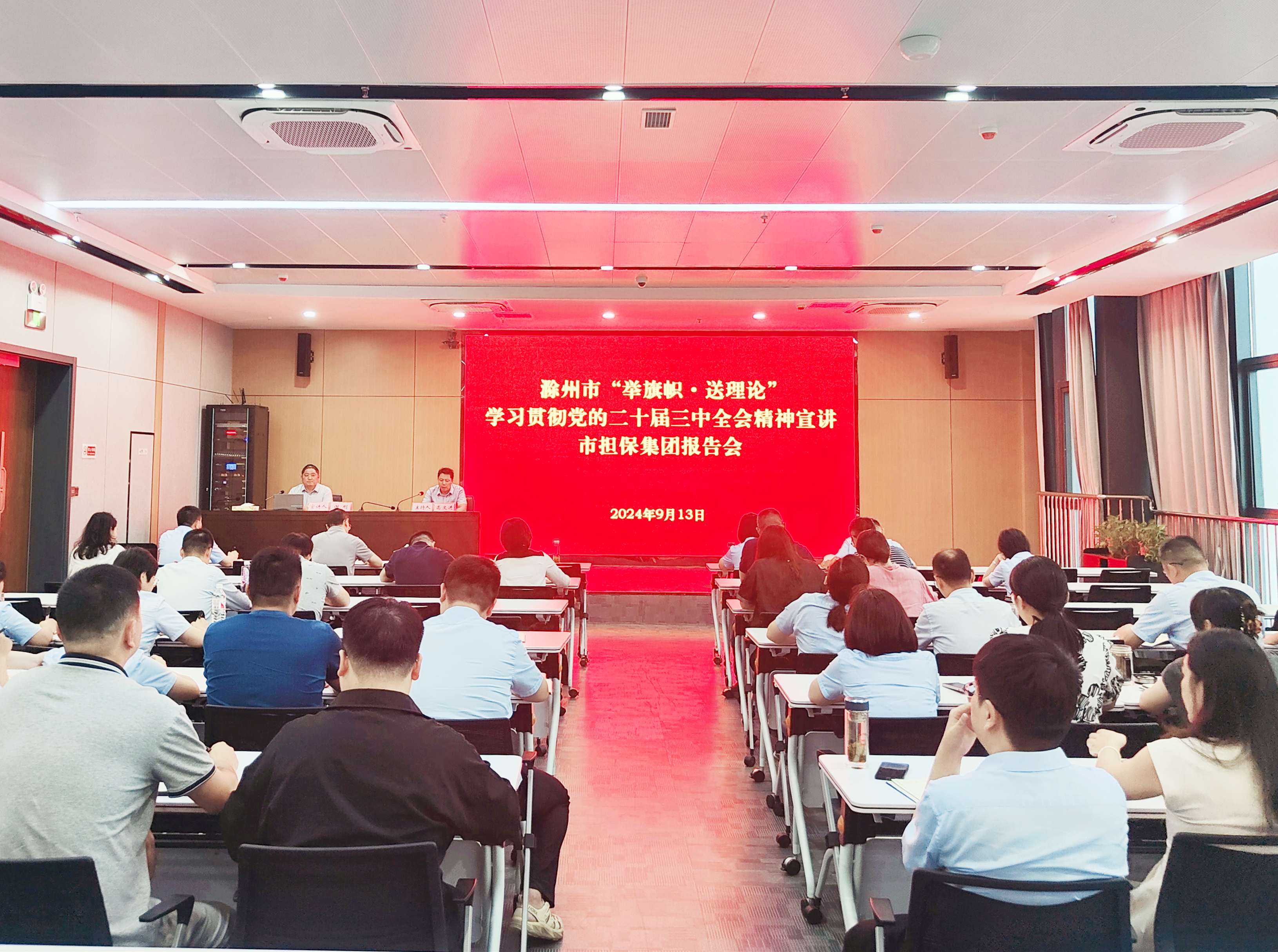根據(jù)市委統(tǒng)一部署,9月13日,市擔(dān)保集團(tuán)舉辦“舉旗幟·送理論”學(xué)習(xí)貫徹黨的二十屆三中全會(huì)精神專題宣講報(bào)告會(huì)。會(huì)議邀請(qǐng)市委講師團(tuán)成員、滁州開放大學(xué)黨委委員、副校長(zhǎng)謝剛同志作宣講報(bào)告。集團(tuán)黨委書記高文進(jìn)主持會(huì)議,集團(tuán)及子公司全體干部職工參加。