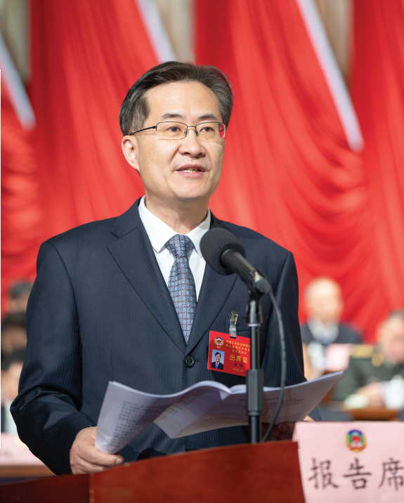 孫軍作市政協(xié)常委會工作報告。全媒體記者盧志永 畢 鴻攝