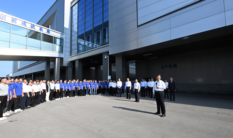 在車間外廣場上,習(xí)近平同企業(yè)員工們親切交流。習(xí)近平強(qiáng)調(diào),我國是制造大國,要努力提高自主創(chuàng)新能力,加快向制造強(qiáng)國轉(zhuǎn)變。中國要強(qiáng)大,各領(lǐng)域各方面都要強(qiáng)起來。全面建設(shè)社會(huì)主義現(xiàn)代化國家,實(shí)現(xiàn)中華民族偉大復(fù)興,前途是光明的,道路是曲折的,還會(huì)面臨許多激流險(xiǎn)灘,要勇于迎接各種風(fēng)險(xiǎn)挑戰(zhàn)。天上不會(huì)掉餡餅,一切成就都要通過我們共同拼搏來取得。大家都是“80后”、“90后”,正當(dāng)其時(shí),要有事業(yè)心、責(zé)任感,努力奮斗,到本世紀(jì)中葉全面建成社會(huì)主義現(xiàn)代化強(qiáng)國之時(shí),大家一定會(huì)為“強(qiáng)國圓夢(mèng)、功成有我”而感到自豪。